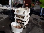 We are happy to say that this year we raised eight turkeys (6 toms and 2 hens) to adulthood and from those two hens hatched out 12 poults of which 10 survived and are currently thriving. This past weekend we butchered those turkeys and we managed to get a 21-pound bird. Not bad for pastured heritage birds. We usually pasture 50 or more chickens for meat and have built a Whizbang Chicken Plucker and have a whole setup. (See photos.)
