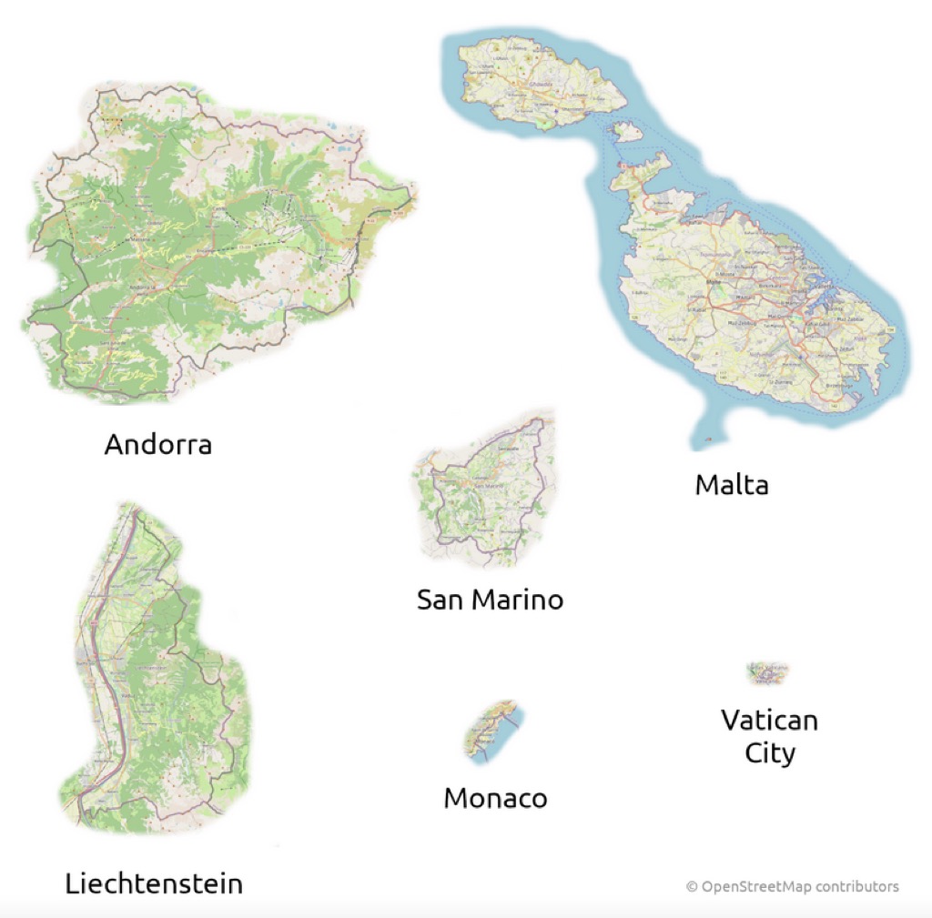 Today’s graphic: Size comparison of European microstates. (Graphic courtesy of Reddit.)