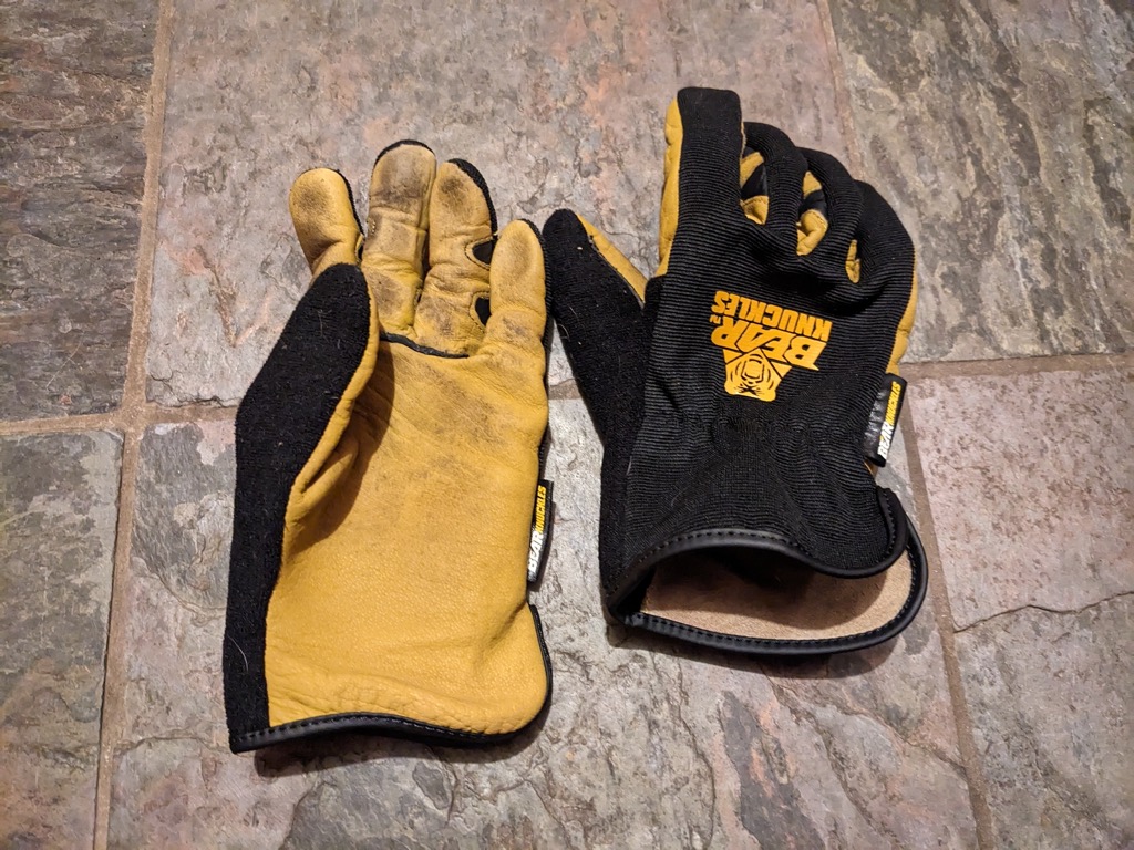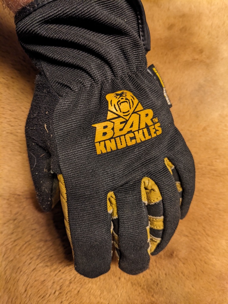 “Kari” and I went out of state to help our middle daughter “Ella” and her family with a move. The coat that I took had a pair of the Bear Knuckle heavy duty gloves in the pockets. As I mentioned above, those are excellent gloves that I usually use for chainsaw work. But as I disassembled beds and taped up boxes, I quickly came to miss the extra dexterity of the hybrid gloves. I spent a lot of time pulling the heavy duty gloves off to complete a task, then looking around to find where I had left them when the task was done, and finally pulling them on again. The hybrid gloves are much more versatile for all but the heaviest tasks.