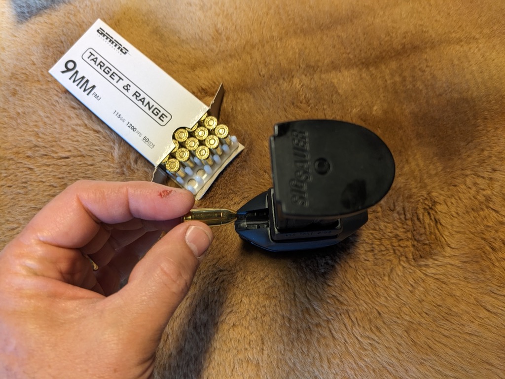 Next, I used a stopwatch to compare how long it took to load the magazine by hand versus how long it took to load it using the loader. I alternately loaded the magazine by hand and then by using the loader three times each.