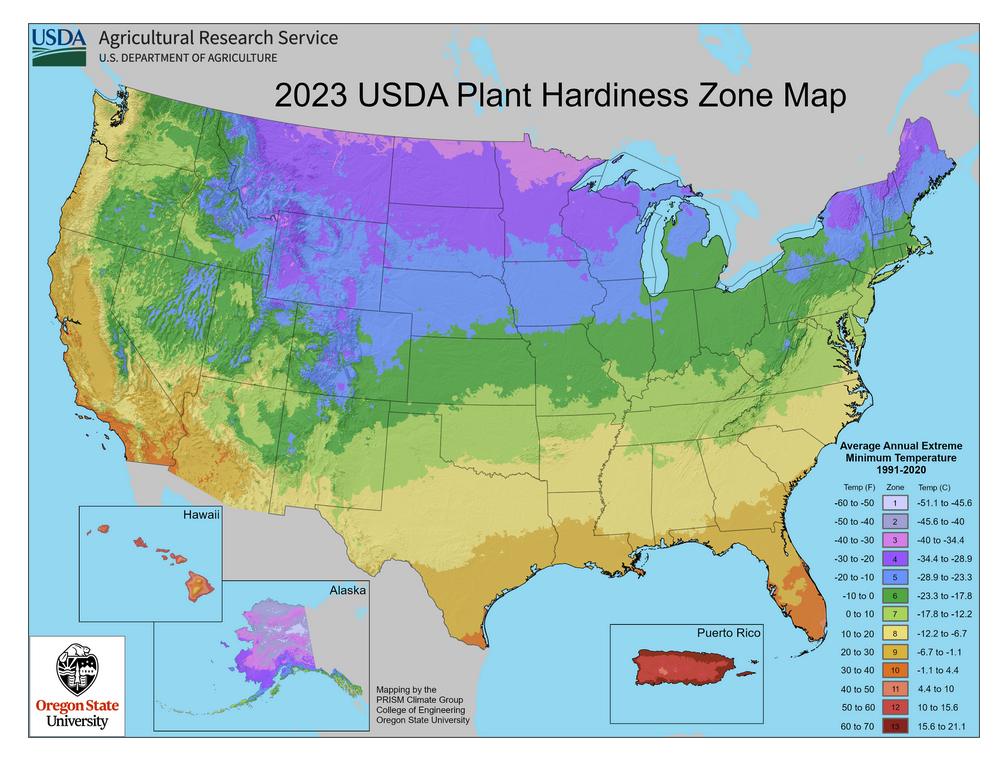 Today’s graphic:  USDA Plant Hardiness Growing Zone Chart. (Graphic courtesy of Oregon State University (OSU) and the U.S. Department of Agriculture (USDA).
