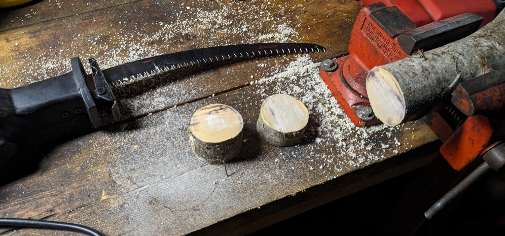 I set a piece of cordwood on a stump, and tried to cut it using the EZARC blade in my reciprocating saw. The task did not go well. It seemed to take forever to get halfway through the first piece of cordwood. At that point, the kerf bound the blade so tightly that it pulled the tang right out of the saw in spite of the fact that it had been tightly seated. I put the reciprocating saw away, and elected to use my corded electric chainsaw to finish the task.