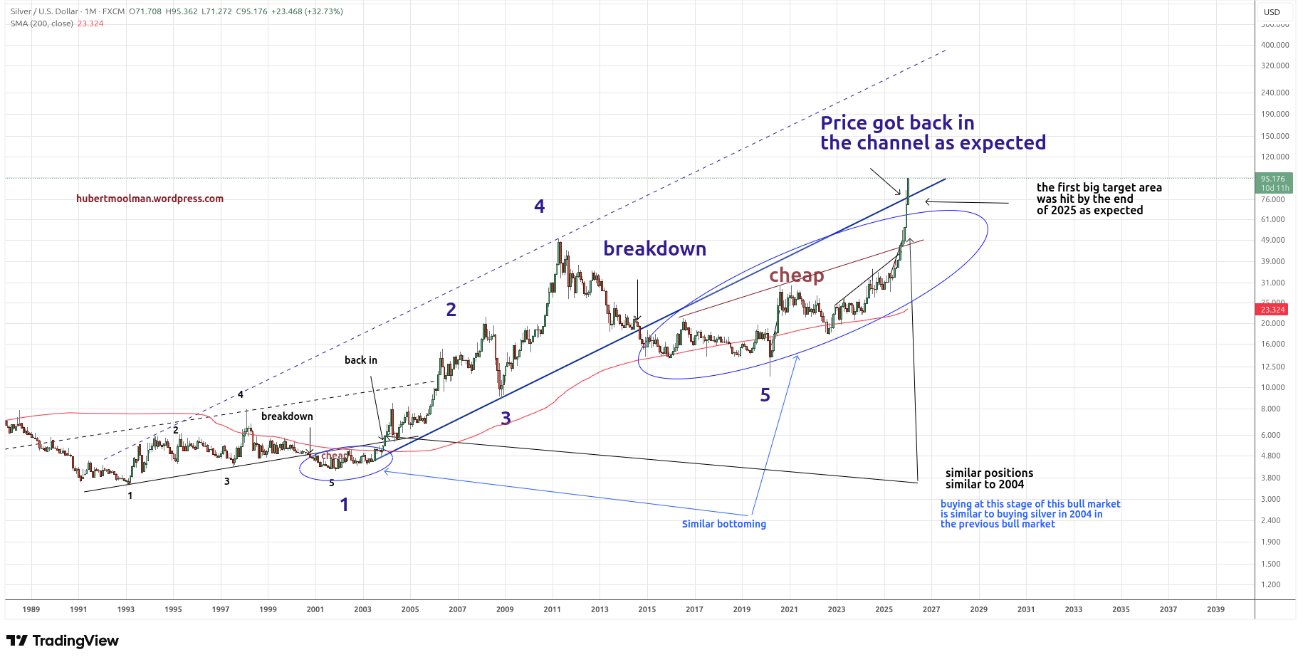 Editor’s Introductory Note: This analysis was published by our friend Hub Moolman on January 20th, 2026. There is a wide range of opinion amongst precious metals market analysts on where the top might be for silver, in the current cycle. I personally expect to see a top somewhere between $125 and $195 per ounce. The bull market will probably be stopped by the combined force of legislation, executive orders, central bank intervention, and radically increased margin requirements by the metals exchanges. Presently, Asian silver buyers are unperturbed by the recent COMEX and LBMA trading rules changes. But when it comes, the PRC government’s draconian intervention will surely have a profound effect. I urge SurvivalBlog readers to cover their costs by gradually divesting as this spike continues. Anyone who bought their silver at below $31 per ounce should have already divested 20% or more of their stack, and put the proceeds into other tangibles. I must also reiterate: Always maintain a core holding of small silver coins (nothing larger than 1 ounce) to be able to barter for necessities. That should be at least 30% of your silver stack.
