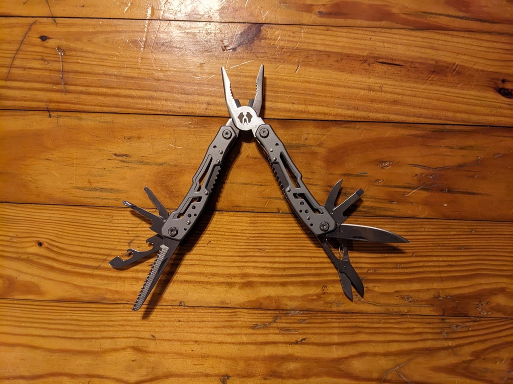 The tools in general are excellent, with some minor reservations. The knife was barely shaving sharp out of the box. It could have used some additional attention at the factory. The serrated “saw” would probably function better as a serrated knife, but was not especially sharp. The belt loop on the pouch that came with the multi-tool was somewhat flimsy, which could easily lead to the loss of the tool in the field. I would recommend an integrated pocket clip rather than a pouch. The multi-tool is made in China. I estimate its value to be roughly $25.