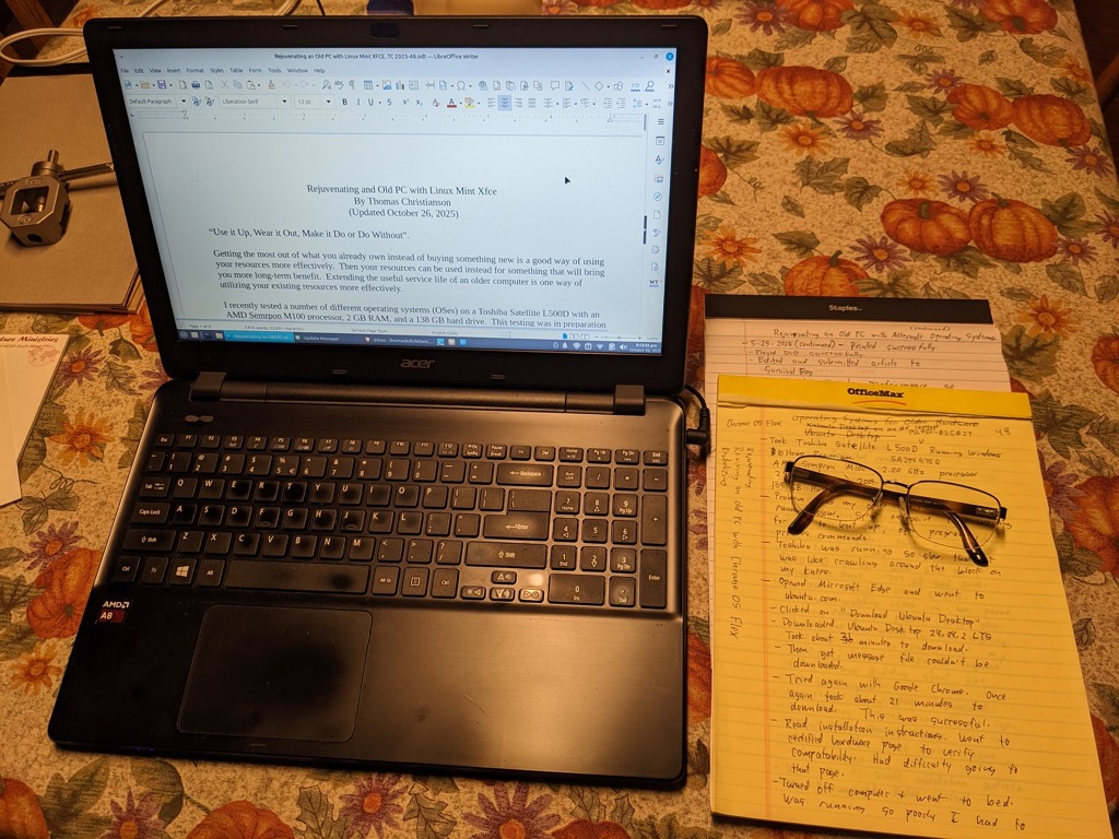 At that point, I was satisfied with the performance of my test platform in every way. I decided it was time to take the plunge and install Linux Mint Xfce and the other programs that I had tested and approved onto the Acer.