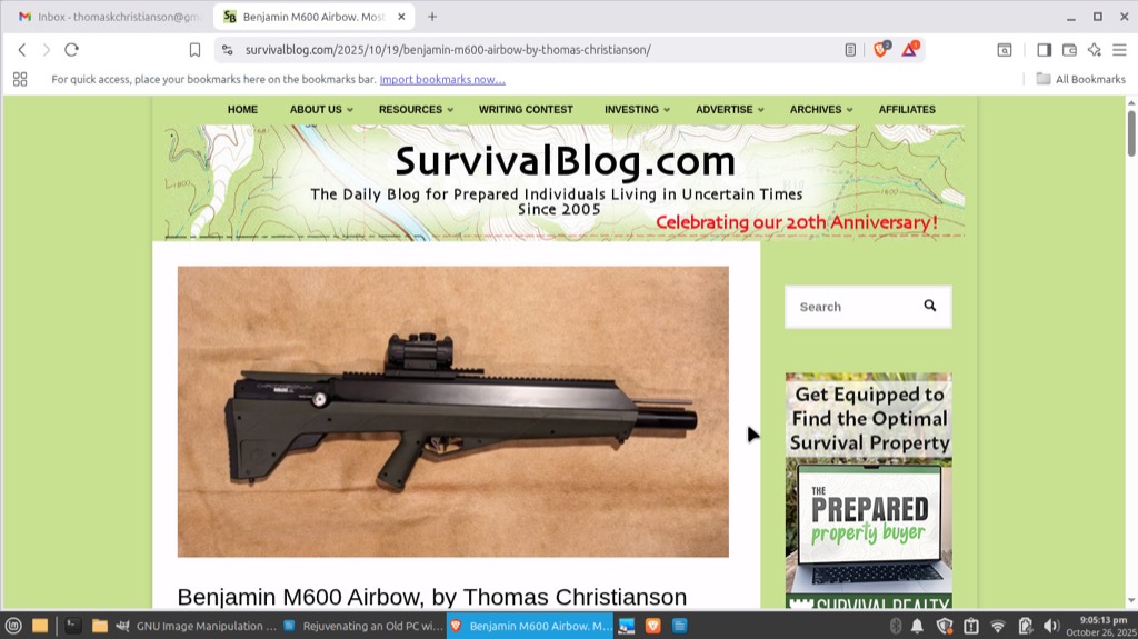 I was quickly able to install our printer, play a DVD video, and edit and submit an article to SurvivalBlog. I was extremely pleased with its initial performance.