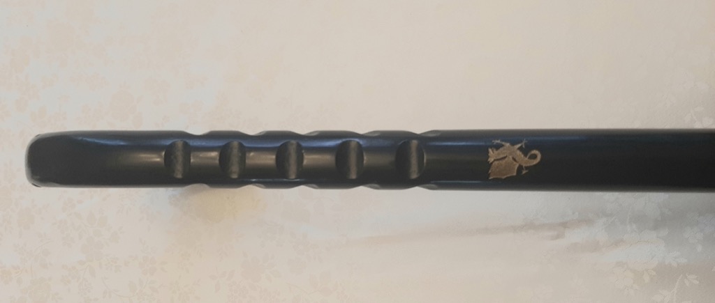 Other features are a matter of personal preference and budget. I personally like having a carved grip at the top and the bottom of the shaft, and I strongly prefer a sharply pointed horn and a rough “rumble strip” area of grooves on the inside middle of the shaft. These improve retention and concentrate force into smaller striking edge areas, increasing the probability of injury to an attacker with each strike. A black finish makes the cane less visually noticeable, and in dim lighting, an incoming strike is basically invisible. Surprise! Personalization options are available and increase your enjoyment of use; I have a carved Welsh dragon on one of my canes, celebrating my Welsh heritage. You may want your name, military service details, or personal totem or motto carved onto yours.