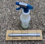 I allowed the products to dry for about 15 minutes. I then put about two tablespoons of salt-based ice melt into a spray bottle and added about 8 ounces of water. I then shook the spray bottle thoroughly. There was not enough water in the bottle to dissolve all of the ice melt. I then sprayed the test surface with a generous amount of the solution from the bottle. By the next day, early signs of corrosion had already begun to appear in the untreated section of the test surface. This was also true to a lesser extent in the Ballistol section. The Breakfree CLP section was still almost totally free of signs of incipient corrosion.