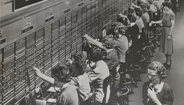 A Bell System switchboard where overseas calls are handled. Not all of the services shown are available during wartime conditions. December 22,1943
